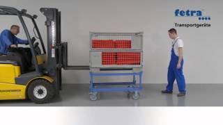 Zum Abstellen von Flachpaletten und Gitterboxen in ergonomisch günstiger Höhe. Winkelstahl-Schweißkonstruktion, mit Fangecken, stabile Stützrohre mit Fußplatten, einsteckbar in Eckhülsen am Aufsetzrahmen. Pulverbeschichtet, blau RAL 5007. Über die Fußplatten sind die Aufsetzrahmen mittels Verschraubungssatz (im Lieferumfang enthalten) fest mit dem Paletten-Fahrgestell verschraubar.