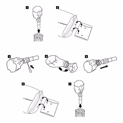 - Sollte nach jahrelangem Gebrauch ein Austausch der Hülle notwendig werden, so ist dies jederzeit ganz einfach möglich