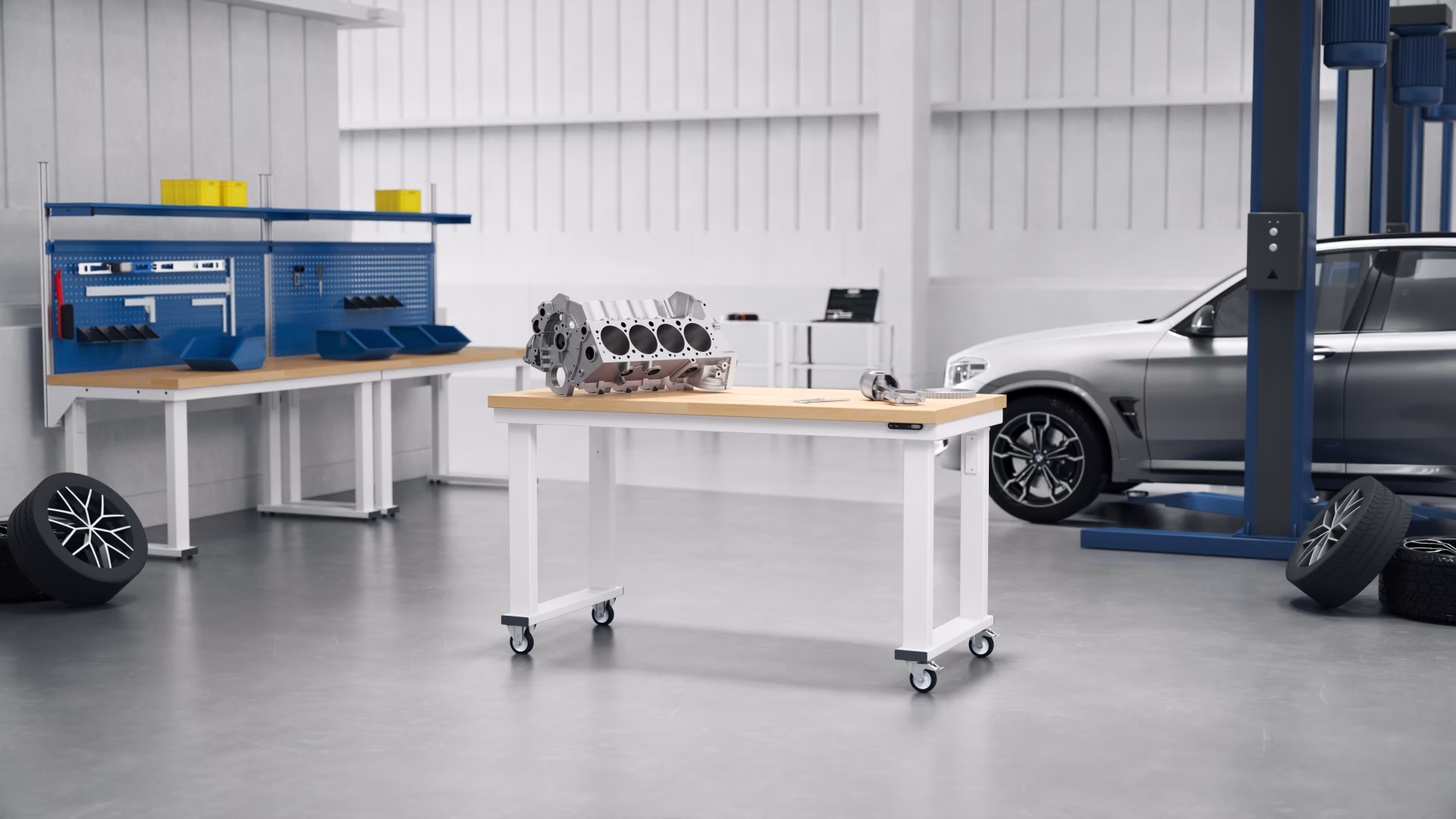 Produktinformationen "Werkbank elektrisch höhenverstellbar, B750xT700xH740-1140mm, Buche-Massiv-Platte-40 mm"